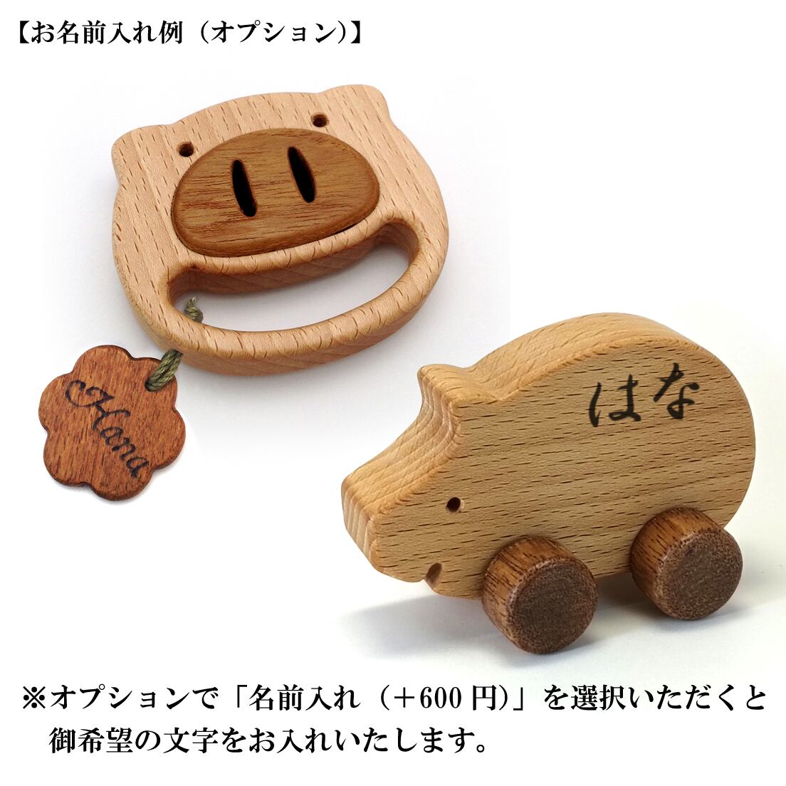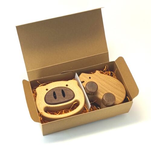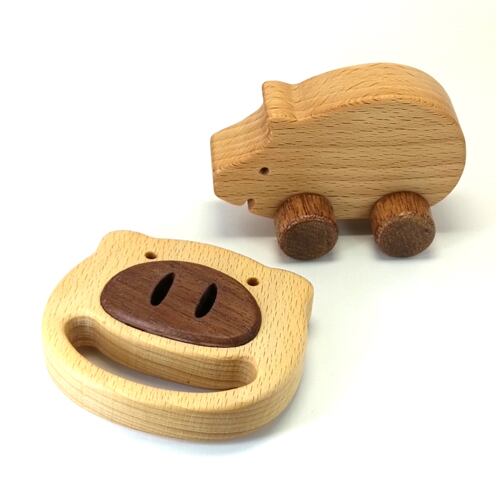 ・コミカルな”ぶた”の「ラトル(がらがら)&プルトーイ」の2種類が入ったセット商品です。